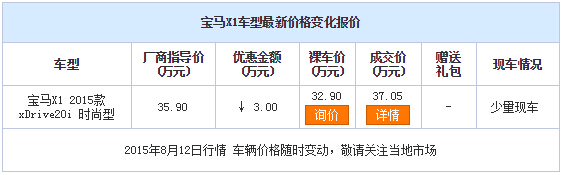 新浪银川汽车讯 近日,编辑从宁夏金润宝宝马4S店了解到,宝马X1 (配置|询价)现车销售,颜色可选,目前购车部分车型可优惠3.00万元,感兴趣的朋友可以到店咨询或电话垂询。