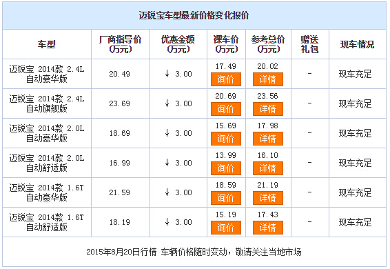 新浪银川汽车讯 近日,编辑从上海通用雪佛兰宁夏新世界4S店了解到,迈锐宝现车销售,颜色可选,目前购车部分车型可优惠3万元,感兴趣的朋友可以到店咨询或电话垂询。