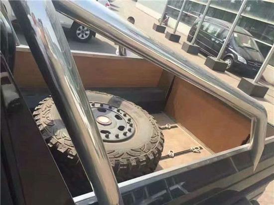 6*6 源自澳大利亚陆军G wagon6*6军用车设计V8发动机5.5T双涡轮增压,7速手自一体变速器536马力,759牛米,空载模式下0—96公里/小时提速在6秒以内。急速160KM每小时。六轮驱动、整备质量3.75吨,长5875mm,宽2110mm,高2210mm,轴距3120mm,离地间隙18寸。18英寸beadlock轮毂,37英寸全地形轮胎。四个20升的空气压缩罐,能在20秒内从0气压充至到2个标准大气压。接近角52度,离去角54度,纵向通过角50度,涉水尺寸1.2米,可手动切换三个驱动轴双油箱手动切换146L、五把差速锁,其中三个用于手动控制,第二轴、第三轴之间的差速器及第三轴独立差速器电子控制。源自乌尼莫克的悬浮式整体桥非独立悬挂系统,可以使车身更好地保持水平。源自军用版G级上的前轮强化弹簧让舒适进一步增强。四座,AMG的碳纤维套件包括外观及内饰,后排娱乐,哈曼音响,电动调节座椅,四个座椅加热通风,竹质拖斗,真皮脚垫,真皮仪表台 |