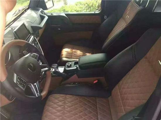内饰方面:2016款奔驰G63在车内应用了更多创新技术,标配新式仪表盘和最先进的COMAND APS NTG 4.5驾驶室管理和数据系统。2016款奔驰G63还配备了带彩色TFT显示屏的AMG仪表盘、AMG主菜单和单独的挡位显示器以及采用白色照明的AMG门槛。