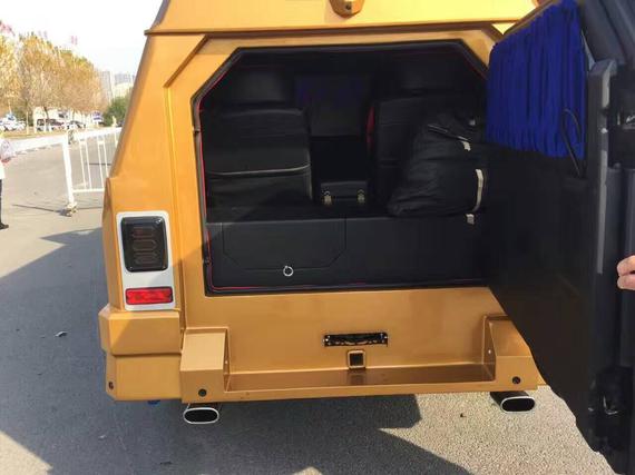 凯佰赫战盾是世上唯一一款量产非“后天”改装的全地形SUV,在它出现前,来自美国的非防弹车型HUMMEA悍马称霸全球,它出现后完全“秒杀”了悍马。目前悍马已经停产,KOMBAT凯佰赫完全称霸了!整车尺寸非常大,与市面上的全尺寸SUV相当,因为是“皮卡造型”,所以只设计了两排座椅。