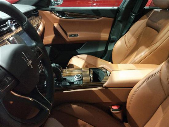 内饰方面:玛莎拉蒂总裁不管是身体坐下还是双手轻放方向盘上,那瞬间的肌肤与手指触感回馈,都能感受到被高级皮革与原木材质所细腻包覆的座椅、方向盘与座舱细部,体现了出所谓豪华跑房车该有的卓越体验。多功能方向盘上装有运动型握柄,中控台上集成了控制装置,仪表也经过改造,在时尚别致的时钟旁,中央凹槽上还添加了一个小型储物盒。