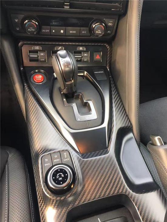 2017款日产尼桑GTR内部这次也进行了升级,方向盘右侧的控制面板进行了重新布局,大屏上方增加了光盘插口,屏幕下方增加了出风口,保留了经典的飞机拨片,一键启动更改到档把前方原先在档把后方,这次不得不说的是方向盘样式也升级了,布局更加合理,并增加了镀铬。