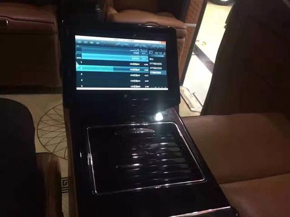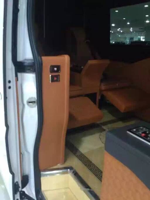 电子影音设备 ● 三电池供电系统 ● GPS全球卫星导航系统带倒车影像+360度环影 ● 乘客舱空调独立控制系统 ● 驾驶舱舱车载25升压缩机大冰箱(可制冰) ● 贵宾舱奢华隐藏式冰酒柜 ● 42寸4K高清液晶升降电视 ● 安尼卡Hi--end 5.1蓝光影音系统 ● 220v电源接口USB.VGA多功能连接口 ● 无线网络终端接口 ● 车载触控屏中控系统 ● 车内电器无线控制系统 ● 前后舱对讲机系统 ● 智能隐藏式胶囊咖啡机 ● 车载空气净化器 ● 卫星接收器 内饰商务配置 ● 豪华电动一键式展开记忆功能调节反向座椅(通风,加热,气动按摩) ● 高档电动调节对开阿尔坎塔拉麂皮绒窗帘 ● 豪华电动伸缩航空铝制小桌板 ● 进口游艇级豪华电子钟表 ● 全车豪华钢琴漆装饰 ● 全车古巴影木地板 ● 进口意大利阿尔坎塔拉麂皮绒顶 ● 全车氛围灯 ● 极具现代感奢华酒柜 ● 后排奢华三组模式一键式记忆电动折叠航空首长席(加热,通风,气动按摩) ● 动态星际航空顶 ● 四季实用透明环保地膜 |