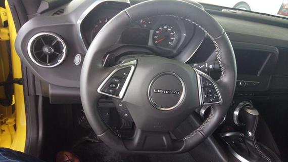 内饰方面:雪佛兰科迈罗大黄蜂车内空间充满强烈的智能科技气息。方向盘采用三幅式真皮包裹,并且集成了诸多功能键。
