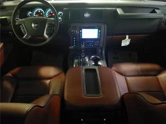 悍马H2的内饰得到了100%的升级。车内装备了崭新的真皮座椅,坐在上面,驾驶者和乘客可以尽情地欣赏全新的仪表板。其仪表采用了铬合金镶边,显示的信息整洁易读,一览无余。中控台模块采用了通用公司的储物格形式,内设音响控制键和其它控制键。另外,中控台上部有一个崭新的设计——镶嵌了一枚钟表。