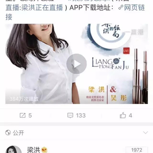 又一期直播结束啦!不得不说,梁女侠就是梁女侠,总是能够惊爆我们的眼球:直播刚一结束,微博观看量已经达到384万,又一次刷新了我们的数据!!截至目前,观看量已达到385.5万,微信平台观看量20.1万次,总观看量达到405.6万。