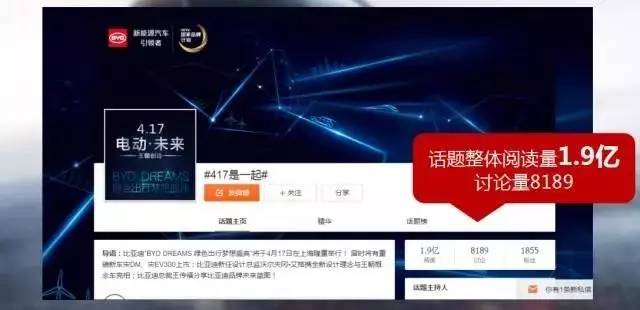 2017年4月17日,比亚迪首次在微博社交平台进行宋DM、宋EV300新车上市大事件传播。