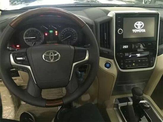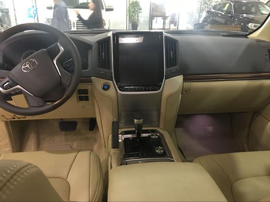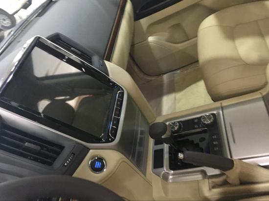内饰方面:2017款丰田酷路泽4000操控台没有过于繁杂的操控按钮,多功能方向盘方便 了驾驶员的操控,轻松驾驶。设计师并没有忘记它越野车的身份,所以你能找到很多硬朗的线条,其实用性和舒适性更可媲美豪华轿车。中控台换成了具有磨沙手感的金属板件,增强了内饰的质感。上方为多功能显示屏,中间为音响控制系统,左右两侧为空调 出风口和空调温度控制按键。