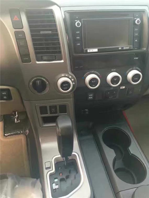 内饰方面:丰田红杉内部空间采用了符合人体工学的设计理念,同时还应用了高品质的内装材质,中控台被银色和黑色分割成了两部分,从而让驾驶者更方便操控。