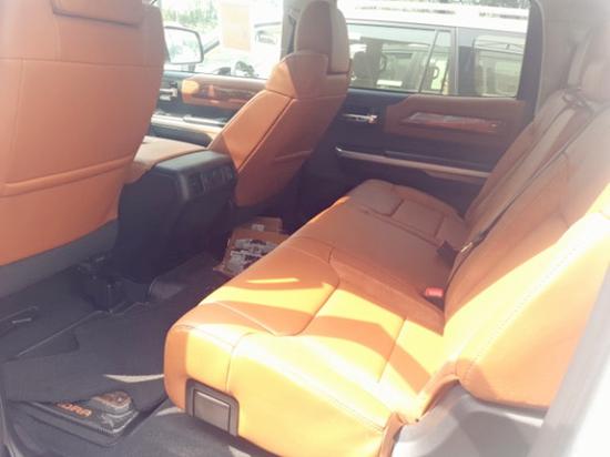 (坦途1794内饰)坦途1794是纪念版豪华型,舒适豪华的配置极高,内饰是棕色,并且带有桃木内饰,前座椅带有通风加热,并道盲区辅助以及JBL高级音响都一样不差,轮毂是20寸的,是坦途系列第二贵的款型。1794是坦途最豪华的系列。购车咨询热线:182-0221-4644苏经理(电话通同微信)