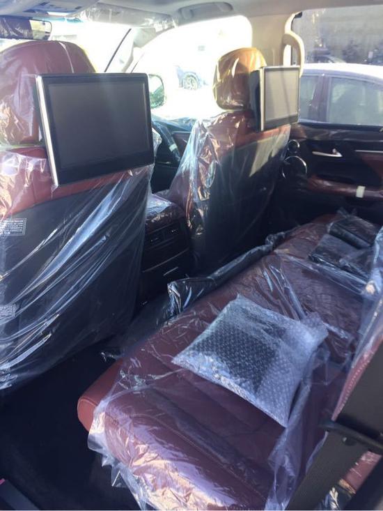 车型17款加版凌志5700颜色白 黑配置金属漆、抬显,冰箱,盲点辅助,换挡拨片、冰箱、天窗、智能卡、电眼、环影、后娱、底盘升降、前座椅通风加热(真皮)、方向盘加热、导航、倒影、桃木多功能方向盘、桃木内饰、铝制行李架、航空照明脚踏、LED 氙灯 大灯清洗、迎宾灯、二区空调、三排电动、电尾门、21轮、拖车钩、鲨鱼鳍式车顶天线、ACC自适应巡航、隐私玻璃、风挡玻璃除冰。