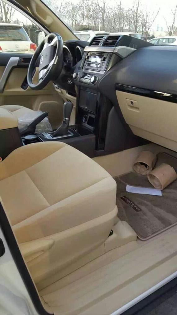 内饰方面:17款霸道2700车厢内的整体设计风格并不刻意追求高档,人性化的布局和并不粗糙的做工给人很强烈的亲切感。中控台规整,横平竖直,各种功能按钮布局清晰。尺寸较大且饱满的四幅方向盘手感不错,男同志使用起来绝对舒适,左右两侧银色装饰部分集成了音响系统和车载电话控制。双环式仪表精致、简洁,多功能液晶屏都是最常用的数据。