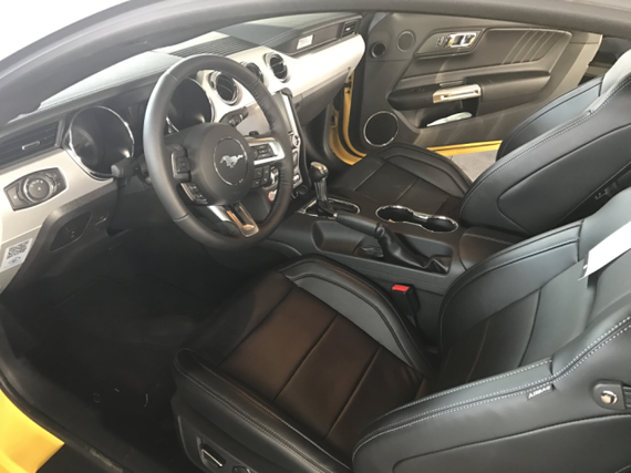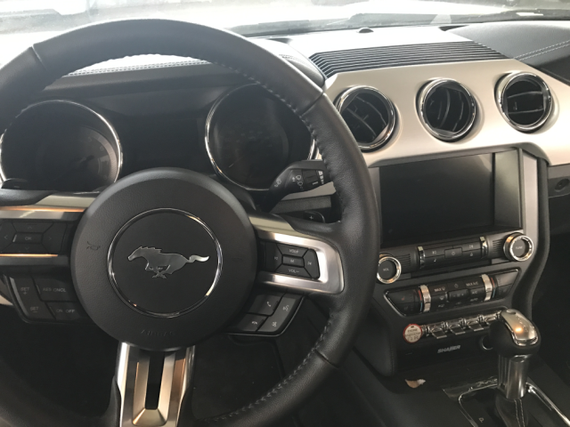 内饰方面:2017款福特野马内饰上主要升级的地方其实只有真皮座椅,其它很多内饰板用的还是硬塑料。2017款福特野马支持MyFord Touch功能的SYNC车载多媒体通讯娱乐系统,可通过中控台上的触控屏进行操作,科技感得到了进一步提升。