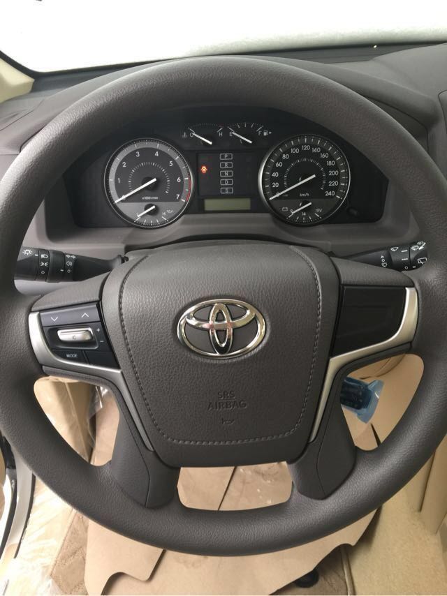 17款丐版丰田酷路泽4000配有多功能方向盘,调节音量和控制显示屏的 功能。下方还有定速巡航功能,解放你的双脚,长途跋涉不会觉得腰酸背痛。手自一体 档位。中东版酷路泽后备箱配有原厂工具箱,还有尾部拖钩预留处。