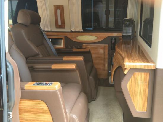 大众T6全车作隔热隔音处理,可最大程度的减少发动机及外部噪音的干扰,豪华游艇级装饰,柚木地板铺设,处处彰显奢华。顶部设计有超大天窗,使车内采光、空气流通性更好。第一排座椅前侧的舱壁上配有豪华航空电脑桌,隔壁是车载电话,前后舱便捷交流。这变成与其竞赛对手对比十分杰出的卖点。