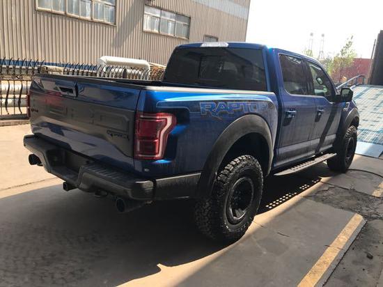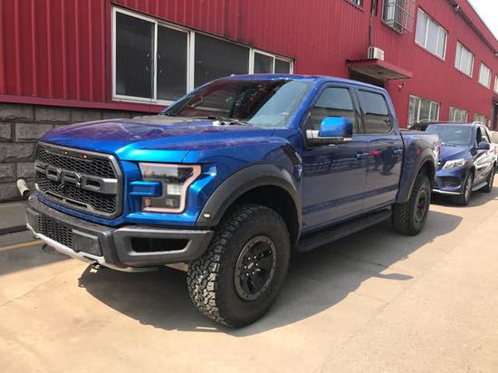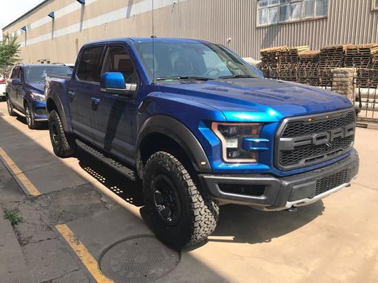 近日从天津京津众泰国际汽车贸易有限公司了解到福特F150 17款 3.5T Raptor猛禽 加版现车|蓝/黑|手续齐全| 配置:802A:真皮电动座椅(主10副10)、前排座椅加热、8英寸液晶触摸屏、智能充电USB、Applink TM、SYNC3(大屏)、电动调节刹车油门、电动后窗、隐私玻璃、除霜器、前排座椅通风、记忆座椅、环影、高级安全包、盲点检测、双区空调、充气式后部安全带、LED边灯、一键启动、自动调光电动折叠外后视镜、方向盘电动调节、遥控启动、SONY音响系统、车库门开启、声控导航 外观图案包(RAPTOR车身彩贴) 科技包:车道保持系统、车道偏离警告、自动高光束、感应雨刷、自适应巡航系统,后箱喷涂,尾箱踏板。 内饰颜色对比包:双色座椅 单选:双天窗防脱圈,碳纤维包,后备箱拓展架,发动机盖贴纸。