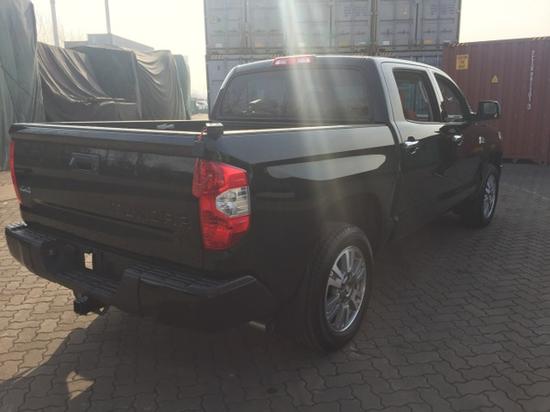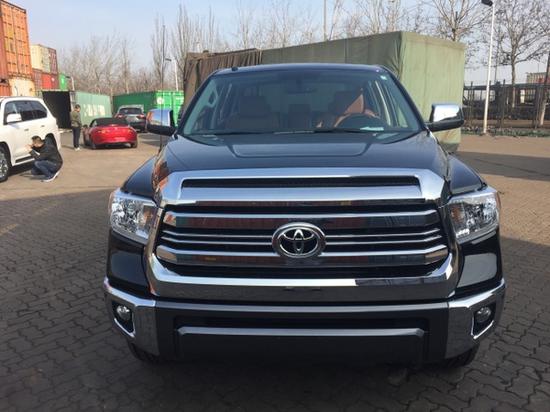 17款丰田坦途彪悍的外形、巨大的尺寸、舒适的乘坐空间、暴力的性能是一款全尺寸皮卡的必备条件,也是丰田坦途吸引眼球的利器,丰田坦途1794版 V8发动机,该发动机最大输出功率为381匹,同时拥有401Nm的最大扭矩。前脸和红杉如出一辙,宽阔的肌肉感是美式车的典型风格,丝毫没有日系车阴柔的一面,而且出色的性能可以适应不同的路况。更多详情请咨询天津盛世德鑫国际贸易有限公司——自贸区店24销售咨询销售热线:13323335573 宿经理(同微信)(店内车辆关单,商检齐全,当日提车,全国可办理分期付款)