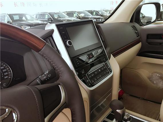 内饰方面:17款丰田酷路泽4000操控台没有过于繁杂的操控按钮,多功能方向盘方便了驾驶员的操控,轻松驾驶。设计师并没有忘记它越野车的身份,所以你能找到很多硬朗的线条,其实用性和舒适性更可媲美豪华轿车。中控台换成了具有磨沙手感的金属板件,增强了内饰的质感。上方为多功能显示屏,中间为音响控制系统,左右两侧为空调出风口和空调温度控制按键。
