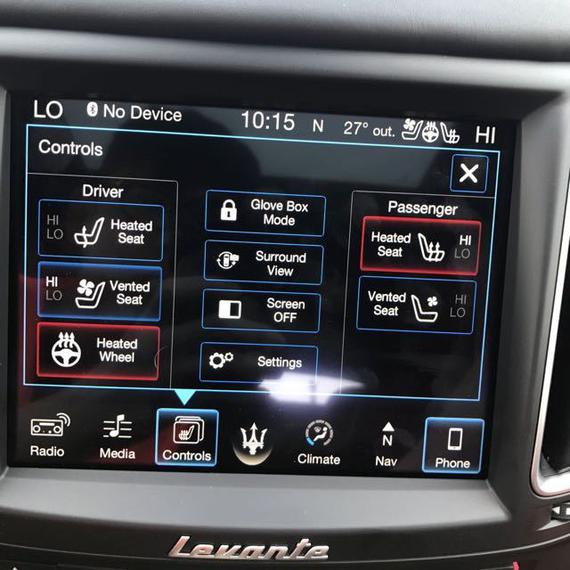 内饰方面:全新一代玛莎拉蒂SUV levante和进入到国内的两款车型均标配全景天窗,感觉上炫了 不少。除了采用触屏操作以外,挡把后方的旋钮和按键组合同样可以操作中控大屏功能,十分方便。