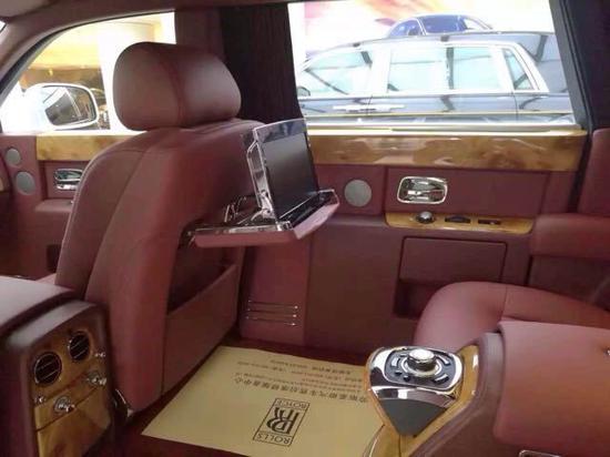 内饰方面:劳斯莱斯幻影加长版是结实耐用和感性化的代表作。该车采用的皮革隐隐地散发着牛的气味,在幻影车上,公众还能看到最高水准的手艺和最优质的材料。每一辆劳斯莱斯都需要精心挑选颜色、质地、层板和设备。