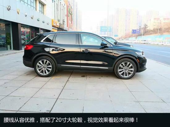 2016款林肯MKX飞翼式进气格栅,前脸经典的林肯标志两侧是双翼式进气格栅,车体庞大非常符合美国车的风格。镀铬线条勾勒出的腰线,透露出车身侧面颀长的线条,使2016款林肯MKX看上去运动感十足。