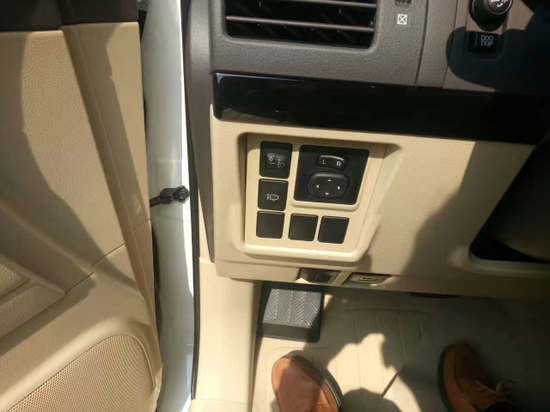 细节方面:17款中东丰田霸道2700车内的储物空间设计非常体贴,前后车门都有足够大的杯架,换挡杆前不仅有储物格,还有12V电源可用。而后排的中央扶手和第三排左右两侧内衬板都很体贴的提供了杯架。后备箱的开口有两个,后风挡玻璃可以打开,放一些小东西不必打开宽大的尾门。侧开式的尾门虽然在拿取东西的时候非常方便。