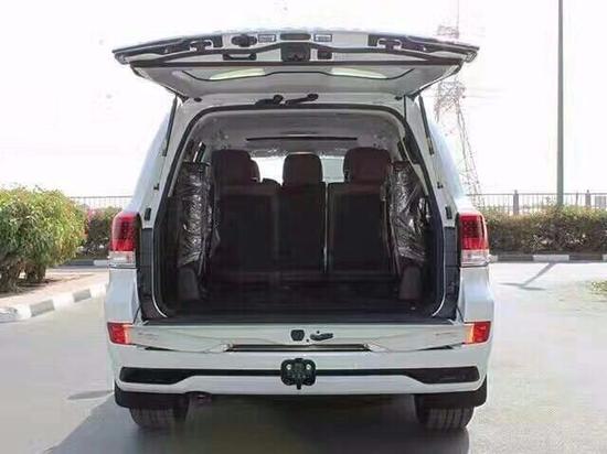 2017款兰德酷路泽5700 配置:8速度、底挂 顶配、天窗、八座、真皮座椅、座椅通风、12气囊、底盘升降、360度环影、雷达测距、蠕行系统、并道辅助、车道保持、八速变速箱、双差速、桃木内饰、桃木方向盘、20轮,氙气大灯、全车镀铬、四门智能卡、前后大包围、大尾翼、前后电眼、后视镜折叠、冰箱、后排娱乐、行李架、脚踏、电尾门、JBL高级音响。