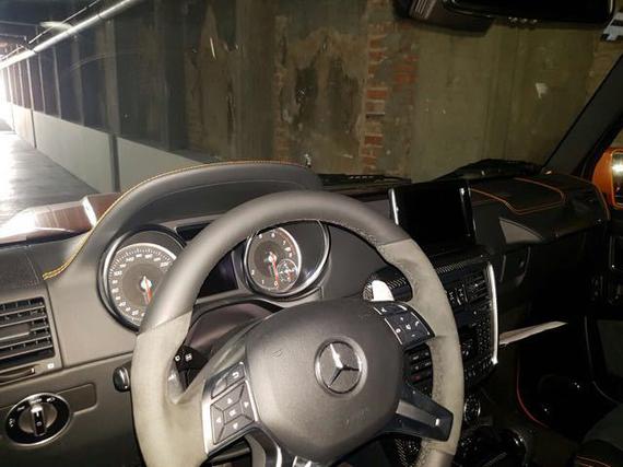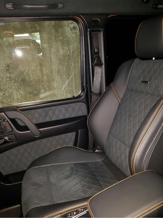 | 17款奔驰G500 4x4²4.0T | 电议 | (汽油)V8发动机,7速,门式车桥,AMG包围,加高加宽的车身,氙灯,日行灯,黑色翻毛皮内顶,碳纤维内饰,前排座椅加热带通风,翻毛皮和真皮双拼座椅和方向盘,换挡拨片,座椅记忆,碳纤维轮眉,车顶碳纤维扰流板带LED上雾灯,黑色车顶,,不锈钢双车底保护,可调悬挂,22轮,前中后三把差速锁,哈曼音响,红卡钳,打孔刹车盘,小天窗, 倒影,踏板 | 368 万 | 电议 | 现车 |