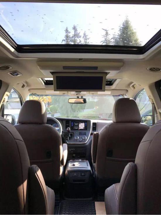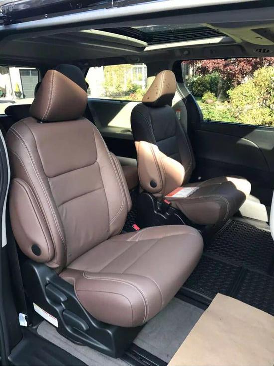 17款丰田塞纳车舱宽阔,安静,座椅全部采用双色真皮。它是这些中型MPV车型中唯一一款采用了全轮驱动方式的车型。只有当前轮打滑的时候,才会将动力传递给后轮,从而既降低了油耗又提升车辆的通过性和稳定性。商务塞纳车内目光所及之处均被大面积的真皮、实木和金属所装饰,新车驾驶舱依然采用非常具有运动气质的飞行驾驶座舱,座椅用料非常考究,车厢内部,可选择7座或8座设计,其中7座版第二排座椅可进行多向调节并配备有腿托,以增加舒适性。