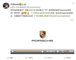 但在这次的传播战役中,最佳战友新浪帮助保时捷解决了这个问题,首先在微博上建立了#跟着刘涛见证Panamera#的微话题,为传播素材打造了专有的输出及输入的端口,也为后期的传播发酵、UGC的产生、网友的热议讨论提供了专属的空间。