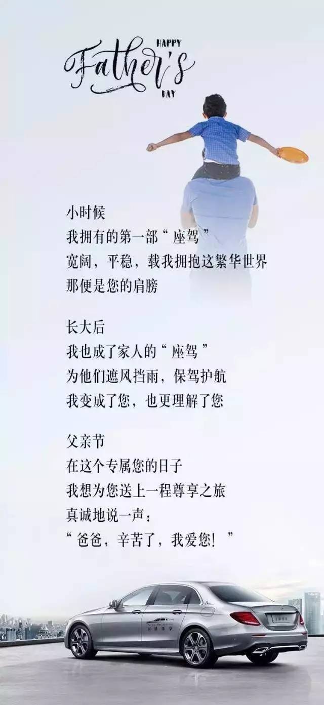 父亲节,不光要有祝福,还要有礼物,记得在留言区选出你最喜欢的一款汽车营销海报,发动亲朋好友来为你点赞哟!给爸爸赢取一个暖心的小礼物吧!