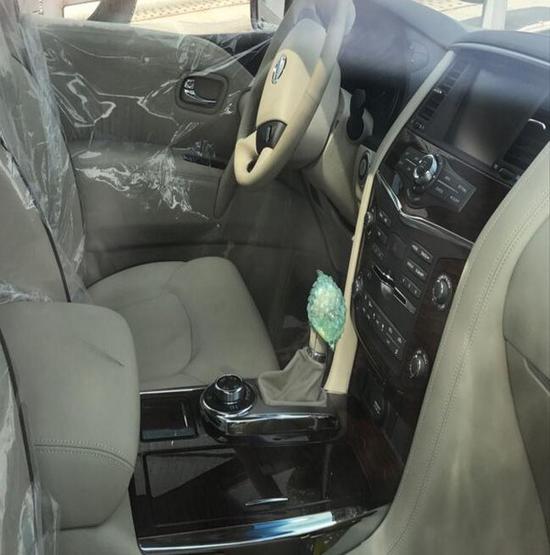 饰方面:17款日产途乐Y62中东5.6 LE的内饰风格非常鲜明,浅色调与高级豹纹桃木装饰让本来温馨的感觉多了一层高贵的气质。四幅方向盘上集成了丰富的多功能键,电加热和电动四项调节,音响控制、蓝牙电话、定速巡航和DCA车距控制辅助系统等功能应有尽有。另外,7寸内嵌式DVD液晶显示屏不仅实用性颇高,在档次方面也是有所提升,同样的显示屏前排头枕后方同样可以找到,后排乘客的舒适性自然不用怀疑。中控部分的设计比较具有豪华感,标准日系豪华车的风格,BOSE音响是很多中高端车所选用的,音响效果不会让你失望。。24小时服务热线 159 2211 4327 陈经理(同微信)全国可办理按揭/分期