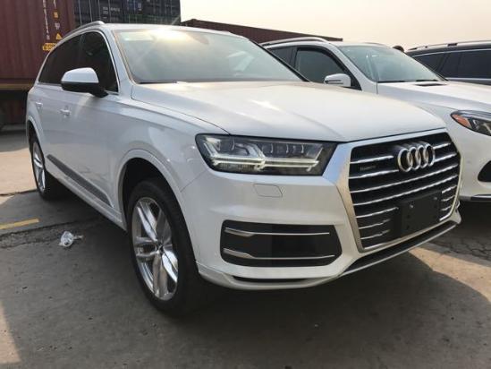 近日店内17款奥迪Q7 (配置|询价)加版现车 天津港口底价优惠畅销,多款配置颜色可选。17款奥迪Q7是一款强调舒适性的全尺寸SUV,将运动性、功能性、高科技和豪华品质巧妙地融为一体。2017款奥迪Q7有着霸气的外观,且不失内在独特的气质,车身线条简洁流畅,运动感和时尚感兼备。前进气格栅由老款竖立式改为横幅式进气格栅,看起来更加霸气非凡,雾灯处的进气坝由老款的格栅式改为蜂窝状,整体看起来更加凶悍无比。店内车辆关单、商检齐全,当日提车,全国购车皆可办理分期付款。