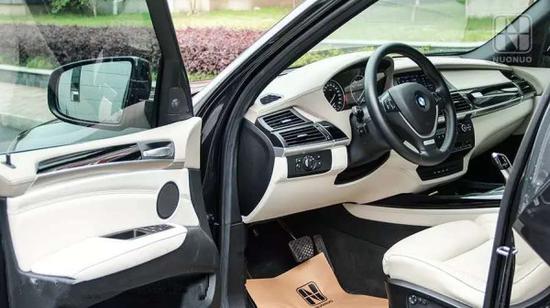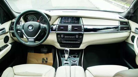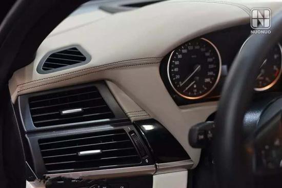 内饰方面:宝马X5车内彰显出强健的气魄和全面的道路适用性。真皮的多功能方向盘手感极佳,宽大的中控台简洁流畅,精准的操控、人性化科技配置以及自身品牌优势都是新一代宝马X5有力的武器。