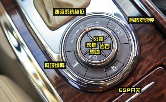 新车所装配的智能全模式四驱系统可提供AUTO挡/高速四驱挡/低速四驱挡,同时提供了四种路况模式(沙地、公路、岩石、雪地)可供选择,可以看出该车的设计理念十分专注于越野及长途穿越等路况。
