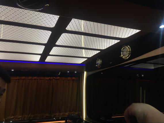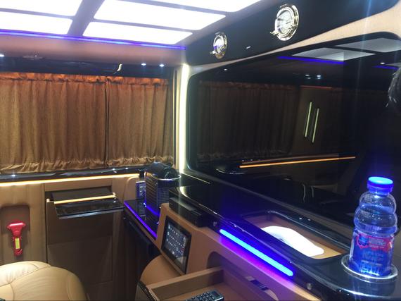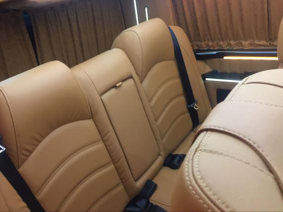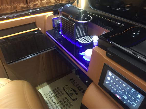大众T6随着电动侧滑门打开,踏入T6贵宾舱内,犹如进入宫殿般流光溢彩。运用大量桃木装饰件,做工极为精细和华贵。贵宾舱座椅采用对列四座。使得舱内空间得到释放,舒适性得到延展。