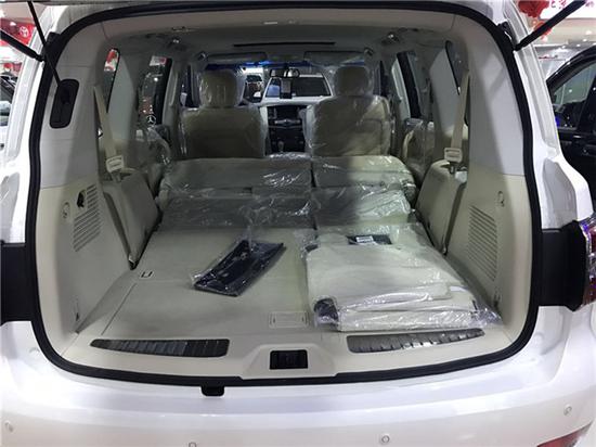内饰方面:2017款日产尼桑途乐Y62内饰营造出了轻松惬意的驾驶环境。浅色系内饰的看上去柔和清新。内饰做工精细,用料高档,白色真皮座椅和方向盘柔软的质感相当不错。采用了四幅风向盘设计,粗细比较合手再加上真皮加实木的用料,手握感觉极佳。简单中却透露着一种原始的粗犷和令人上瘾的刺激感。方向盘功能强大,集成了音响、空调控制及蓝牙车载免提系统,使驾驶者在行车中更为安全,做到手不离方向盘。同时方向盘加热功能,令驾驶者双手在寒冷的冬季也能得到最佳的呵护,舒适的车内空间弥漫典雅氛围,把实用性和豪华性,诠释得如此美妙。