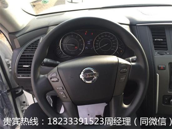 17款日产尼桑途乐Y62越野4.0L中东版采用了豪华轿车惯用的四幅风向盘设计,粗细比较合手再加上真皮加实木的用料,手握感觉极佳。另外方向盘功能强大,集成了音响、空调控制及蓝牙车载免提系统,使驾驶者在行车中更为安全,做到手不离方向盘。同时方向盘加热功能,令驾驶者双手在寒冷的冬季也能得到最佳的呵护。17款日产途乐Y62中东版4.0散热孔在具备了给轮胎和刹车盘散热功能的同时,又勾勒出一副超级跑车的样子,与车头设计相互呼应,霸气十足。18寸轮毂并不算大,多条辐轮毂造型较为粗壮,偏向豪华。