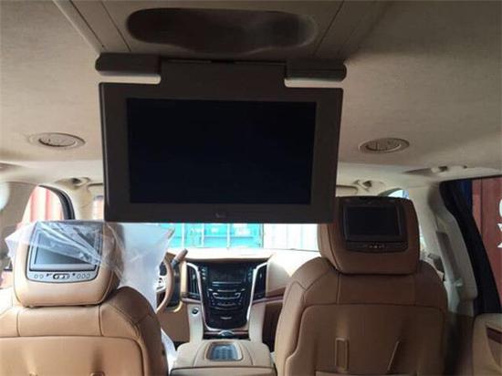 2017款凯迪拉克凯雷德6.2L还搭配了真皮木纹可调节多功能方向盘,使得驾驶者在驾驭这也款车型也能极为顺手,内部还配备了真皮桃木内饰,高级地毯,高级豪华的异域吧台,带来梦一般的境界;LED高清液晶电视,前后可视影像系统,侧面2个7寸液晶显示屏,高级数码家庭影院娱乐系统,这一切似乎无言地诉说着“总统一号”室内的至尊与豪华。