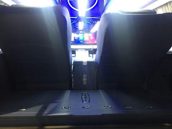 林肯领袖一号车内座椅皆采用百分百纯真皮包裹而成,用料之上乘、设计之人性化,堪称豪车座椅之典范。林肯领袖一号车内颜色灯亮起,各种颜色营造出梦幻般得空间感。皇家座椅按摩、加热、推托及电动调节,可升降分隔屏,前后对讲电话等等,后排的空间和配置让人震撼。