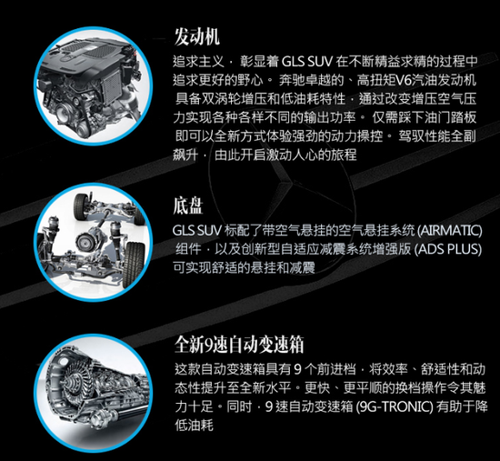 配置方面:奔驰GLS400可容纳7人,而7人的乘坐并不会太拥挤,一辆SUV竟然给了我们接近MPV的驾乘体验。动力表现突出,3.0T的增压发动机给人强烈的力量感,又一次表现了它斗士的一面。