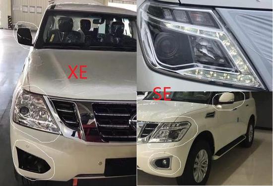 从前面来看,XE没有雾灯,有卤素大灯,后视镜颜色与车身颜色不一致。而SE有雾灯,有氙灯和LED灯,后视镜颜色与车身颜色一致。