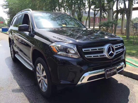 17款美版奔驰GLS450车型配置:P01:(14项真皮座椅调节带记忆功能, 电动调节多功能方向盘 ,前座椅加热, 后视镜折叠带记忆功能, 无钥匙进入,一键启动, 室内氛围灯 ,迎宾灯,越野模式调节,手写系统,行李架,导航)脚踏板,20轮,3区空调,停车辅助包:360环影,盲点辅助 ,车道保持辅助,杨树木饰,桃木方向盘,拖钩,后娱预留线,防盗车轮,电动天窗