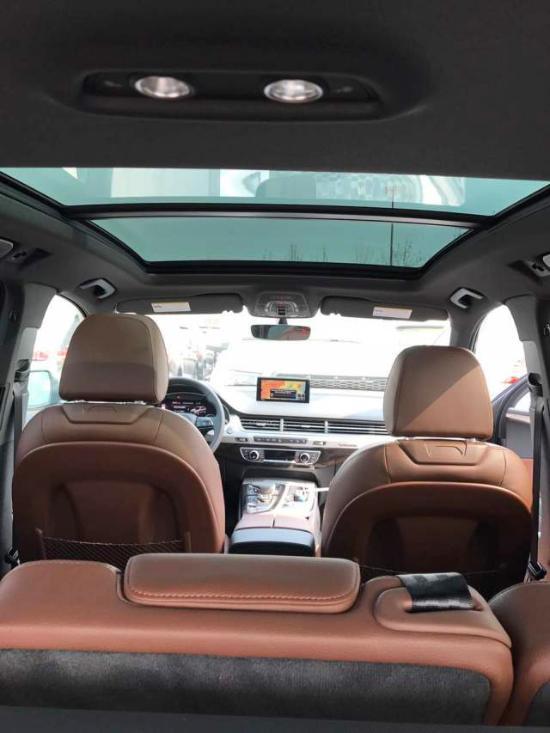 购车热线:15822572775 胡经理(同微信)2017款奥迪Q7加版新车还配备有第二代MMI信息娱乐系统,并可实现触控和实体键双重操作,并且还进一步优化了操作逻辑。奥迪Q7可以加装第三排座椅,后两排五个座椅均可独立放倒。Q7一共有28种不同的座椅放倒方式,可谓是“百变金刚”,如果后两排座椅完全放倒,那Q7将会获得超过2000l的储物空间。