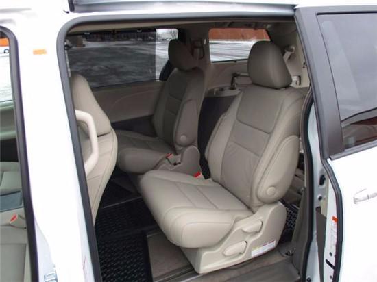 丰田塞纳亮点在于座椅的设计,座椅全部采用双色真皮,第二排座椅的腿部支撑,放倒第三排座椅,加上腿部支撑,完全变成了两张摇篮床,让长途旅行多了一份舒适。