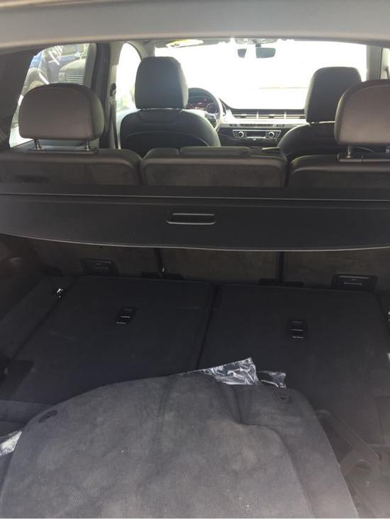 座椅方面:17款奥迪Q7加版3.0T科技座椅按摩,座椅调节,通风,加热等功能齐全,能够满足您对坐姿的要求,主驾驶座椅带有两组记忆功能,可以储存两种坐姿方式,互相之间可以快速切换,方便快捷。2017款奥迪Q7后排座椅较为宽大,空间也很宽敞,长途旅行感觉很舒适,乘坐三个人没有任何问题,座椅靠背可按比例放倒,非常平整,一侧可存放大件物品,另一侧还可满足乘坐。