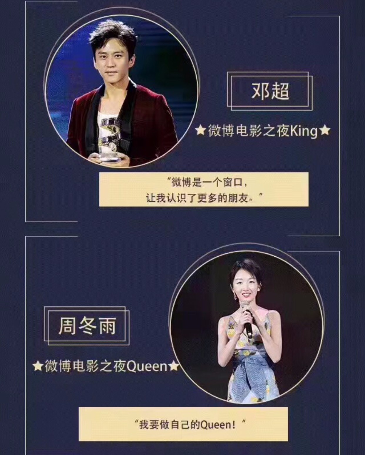 #微博电影之夜#的现场,每一个明星、电影人都是行走的资源流量啊!随便说几个,李易峰、杨幂、赵丽颖、王凯、刘烨、段奕宏,这一众都是当下年轻用户的“杀手”,更不用说“老炮们”,冯小刚、王家卫、杜丽莎等人,以及当晚网友们评选出的“微博电影之夜King”邓超和“微博电影之夜Queen”周冬雨,更是热度高得不要不要的。