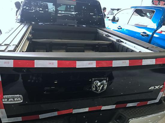 道奇公羊1500头灯和雾灯也采用了硬朗的设计风格,与其他车型相比,它的眼神中没有透露出一丝的活泼或者神韵,唯一展现出来的只有凶狠。硕大的中网造型同样很震撼,“高鼻梁”的设计风格也是车头部位凶猛的精髓之处。2017款道奇公羊皮卡做工则完全摆脱了美式的粗糙感,边缘、接缝都处理的很精细。2017款道奇公羊皮卡对于熟知猛禽等皮卡车型的朋友们来说,道奇公羊的品牌还是具有一定的神秘感和号召力。