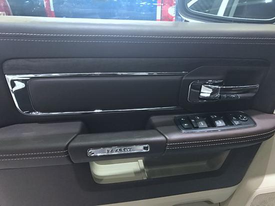 内饰方面,道奇公羊皮卡真皮座椅各自独立,配有加热、按摩等舒适功能,每个座椅独立配一个操控手柄,各项功能由乘坐者自己控制。道奇公羊皮卡车型全部座椅均采用真皮包裹,前排还配备了十分实用的运动座椅。虽说RAM1500是辆不折不扣的皮卡,但其车内氛围堪称豪华,绝对可以媲美高级轿车。仪表台采用软性材质并以真皮包裹,手感非常舒服,镶嵌的木饰采用原木无漆打磨,做工细致考究,保留了木材的纹理细节。完全摆脱了美式的粗糙感,它的精致做工在皮卡中是最好的,没有之一,所以它是皮卡中的贵族。